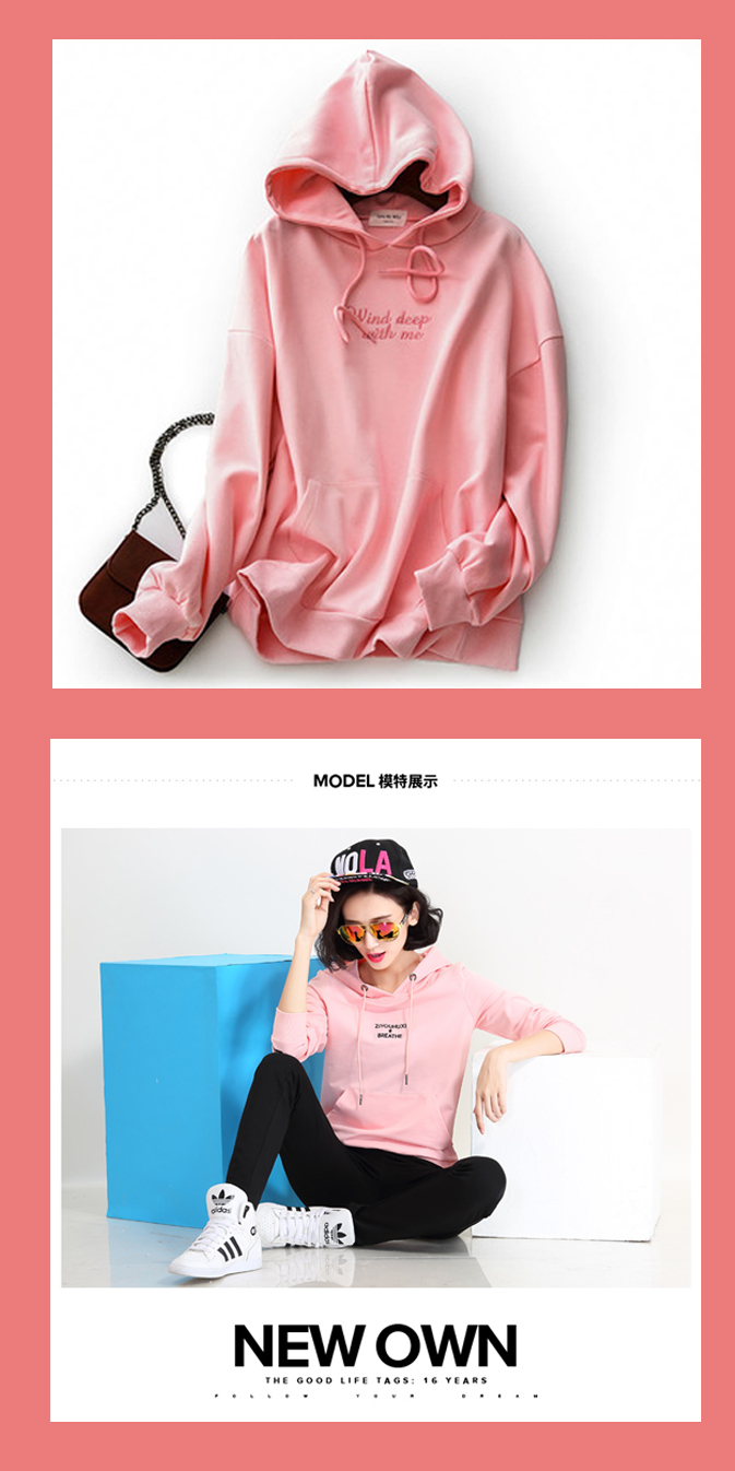 不甜腻、不具威胁性的浅粉色,延续了粉红色的甜美温柔,却又多了一份小清新感,不论男生女生都会喜欢,单是浅粉色就已经优雅得不像话,让我们用一件浅粉色的卫衣增加我们的柔美,也增加了性感。