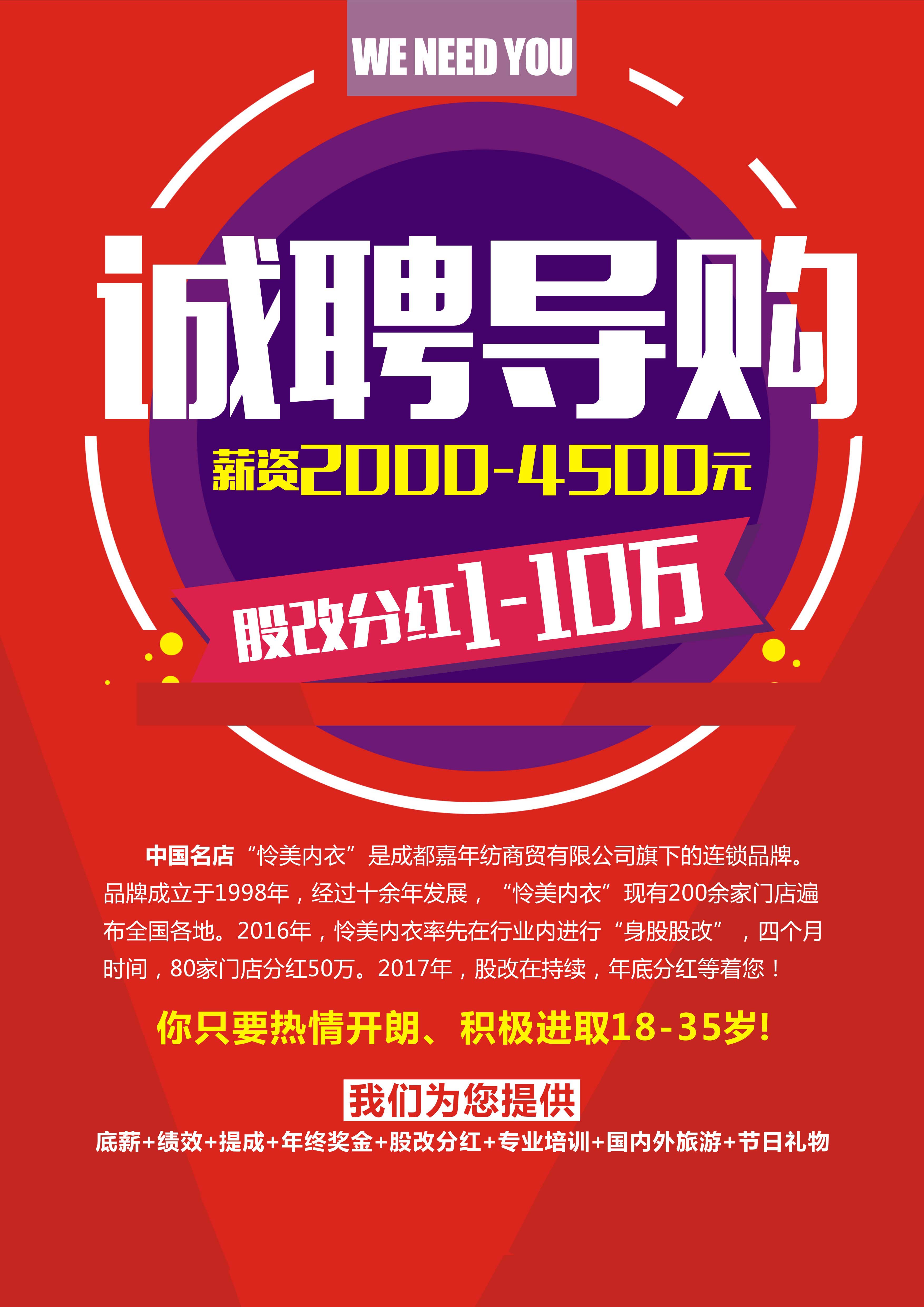 成都嘉年纺商贸有限公司(怜美内衣)是一家集研发、生产、仓储、销售为一体的专业性综合型内衣零售连锁企业。专注于内衣连锁领域的开拓!